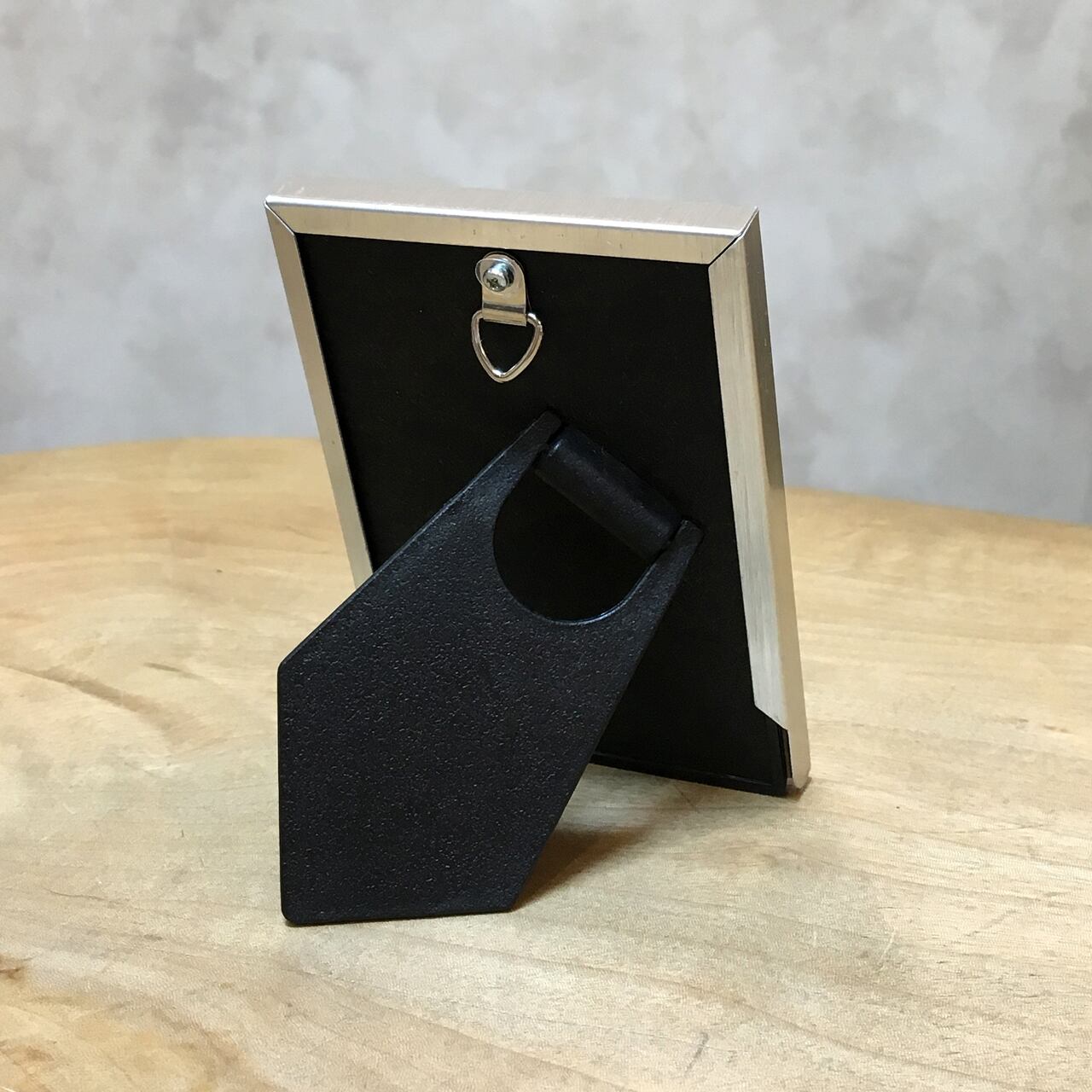 脚つきで立て掛けても、三角吊りカンで壁に飾ることもできます。
